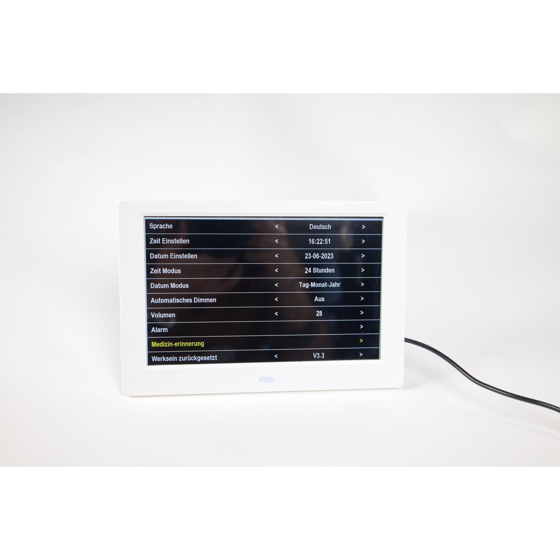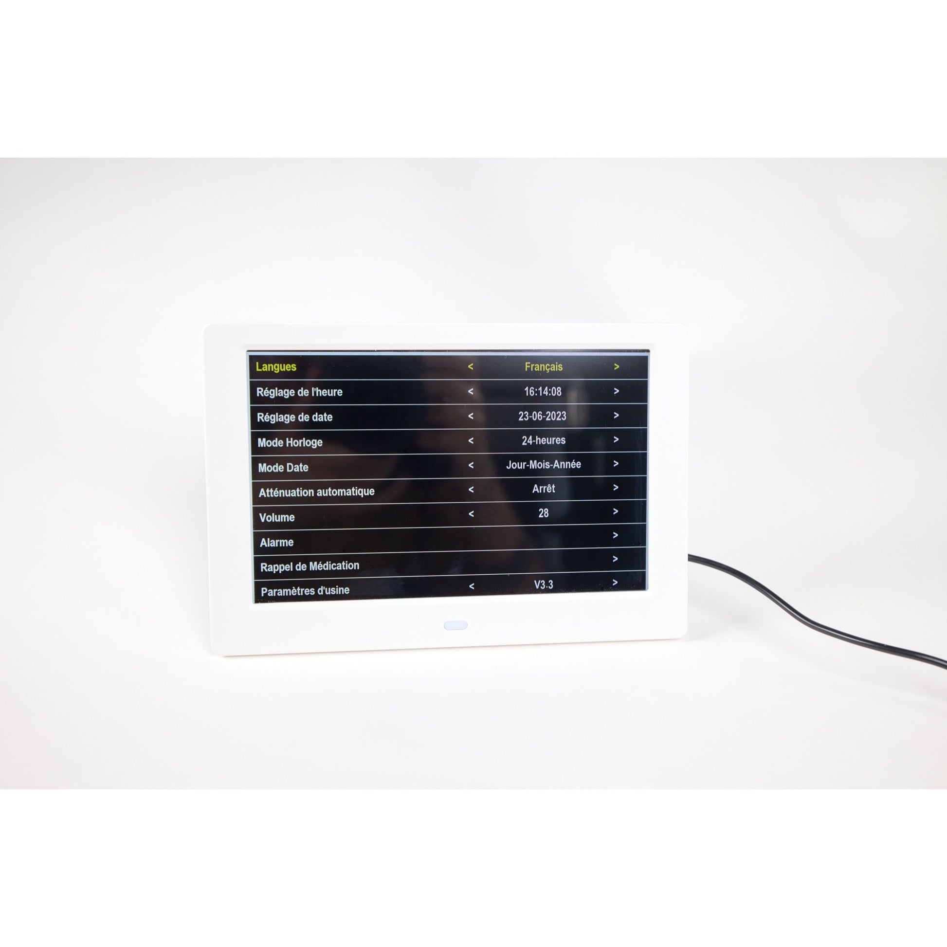 De plus, vous avez la possibilité de programmer des rappels de médication durant la journée. L'Ally Clock propose 3 rappels de médication dont une le matin, une l'après-midi et une autre le soir. Dès que l'alarme sonnera, il n'y aura plus qu'à appuyer sur un bouton aléatoire de la télécommande pour que celle-ci s'éteigne. Le rappel restera en fonction tant que la mode "activé" sera indiqué. Si vous souhaitez arrêter le rappel de médication, il faudra choisir le mode "désactivé".