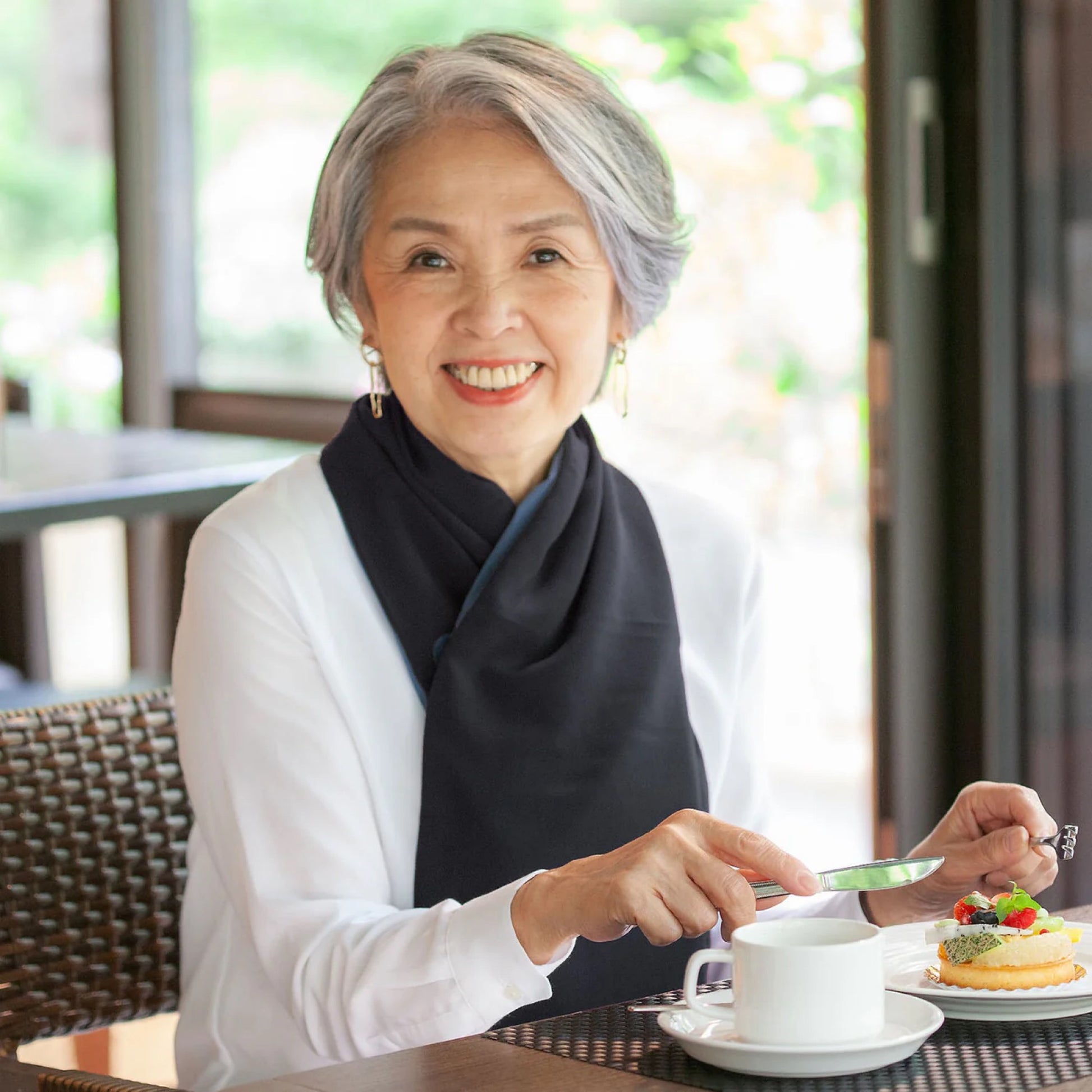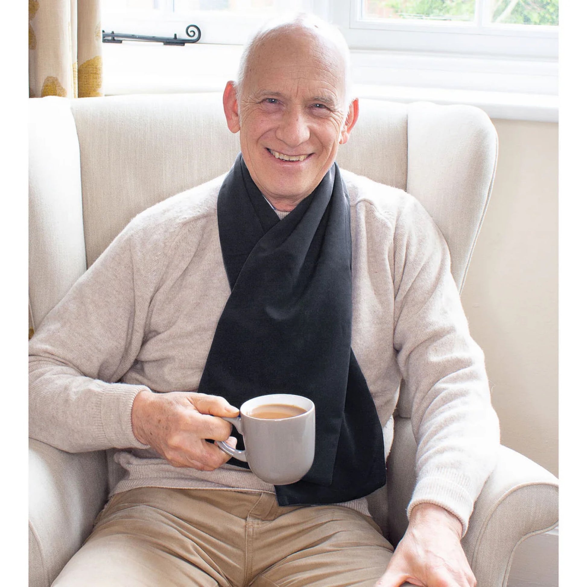 Conçue avec respect pour les personnes âgées, il s'agit d'une écharpe chic combinée à la protection imperméable d'une bavette, qui peut être portée partout, y compris en public, avec dignité.