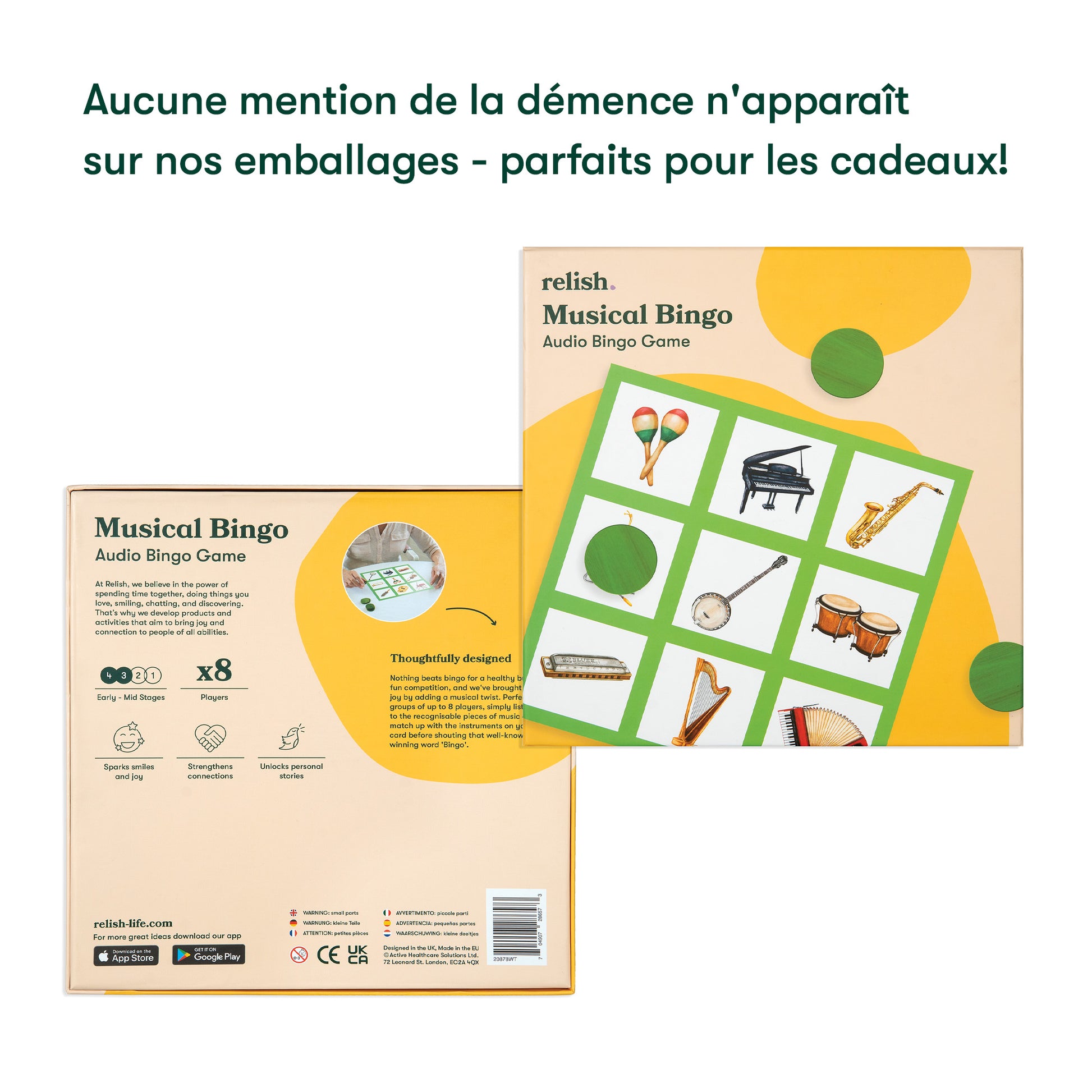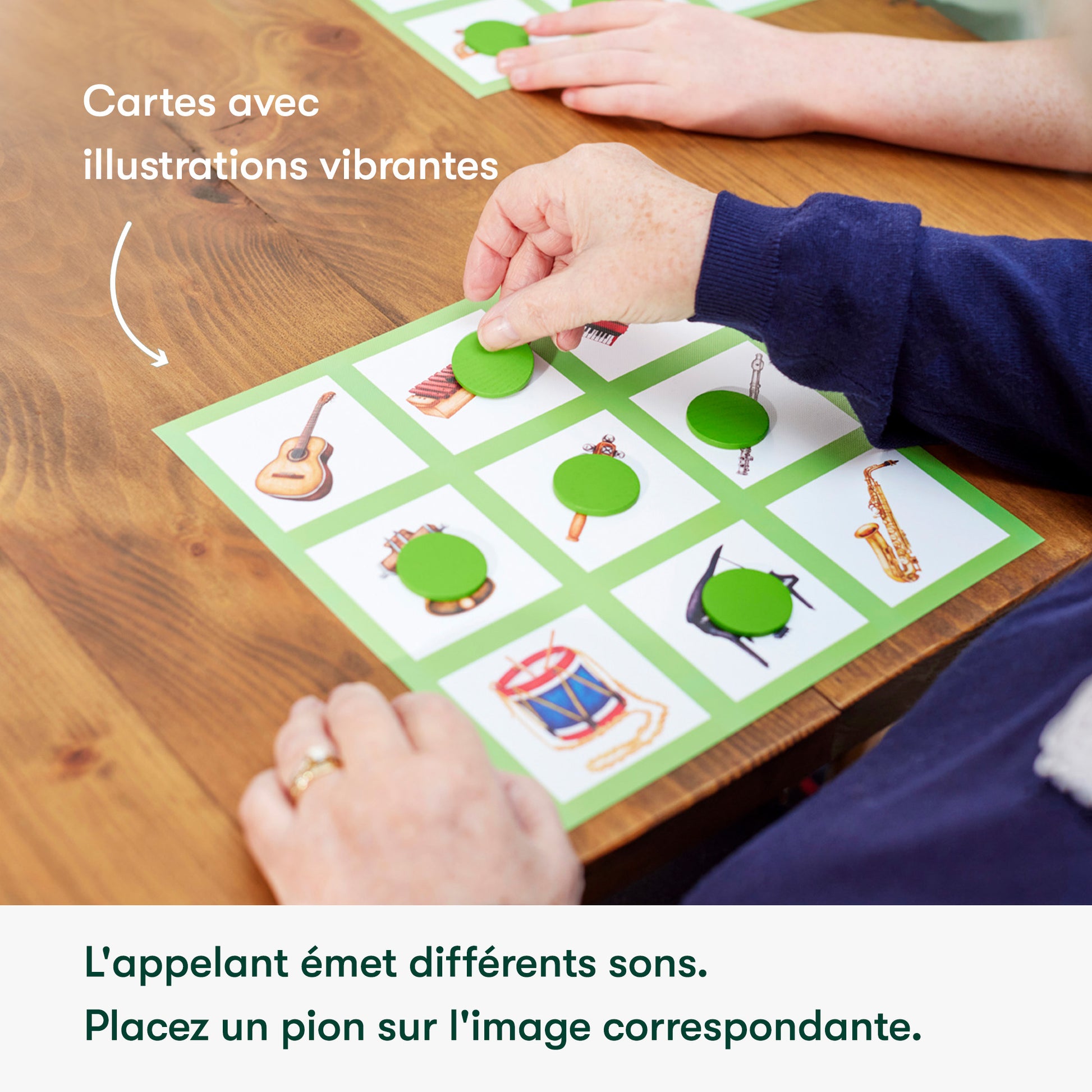 Un jeu de bingo audio, parfait pour les personnes âgées et les personnes atteintes de démence ou d'Alzheimer.