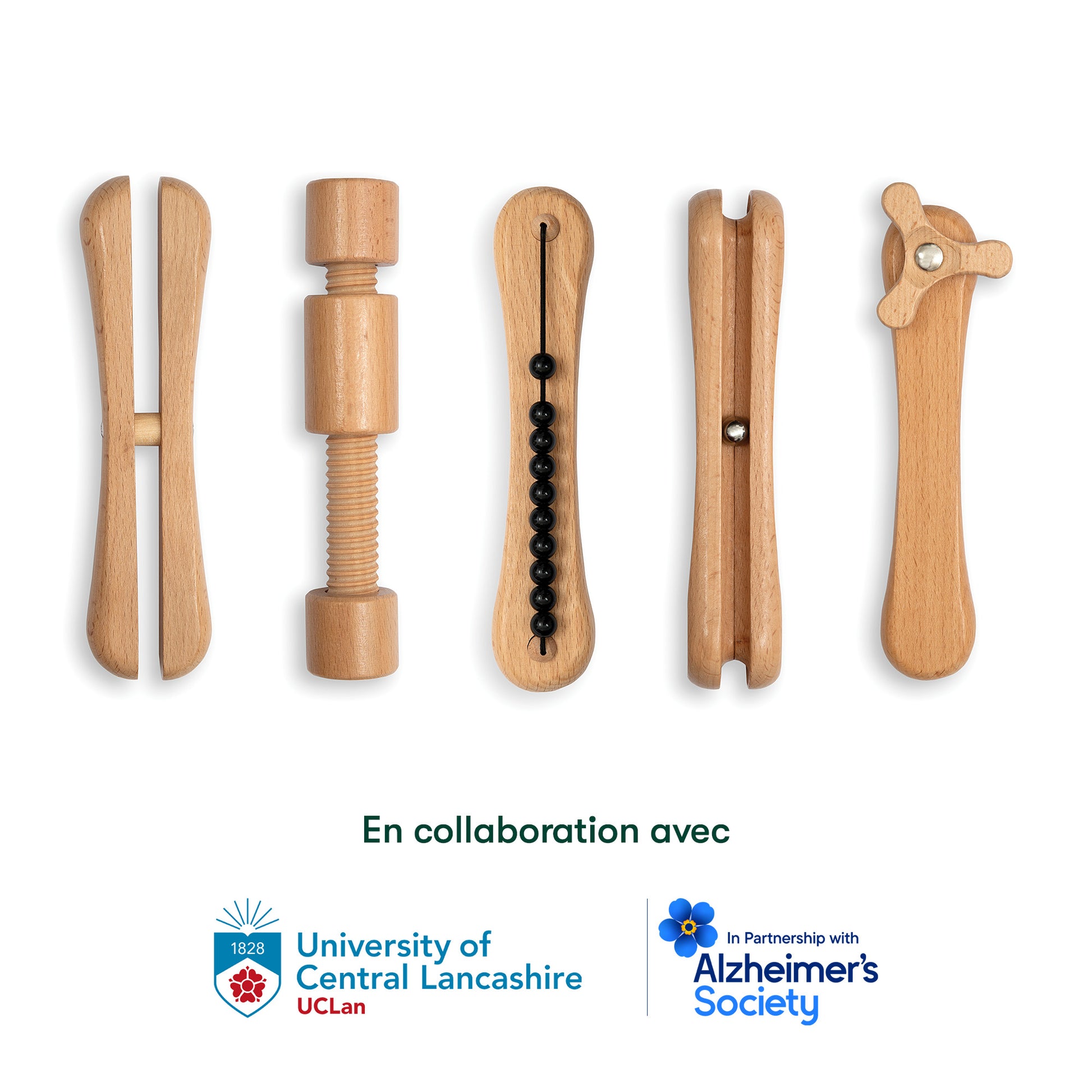Le Fidget Widget a été conçu en collaboration avec la Société Alzheimer et l'Université de Central Lancashire, afin d'améliorer le bien-être des personnes aux derniers stades de la démence, en répondant à leurs besoins psychologiques de se sentir occupés, engagés et inclus dans une activité significative de leur choix.