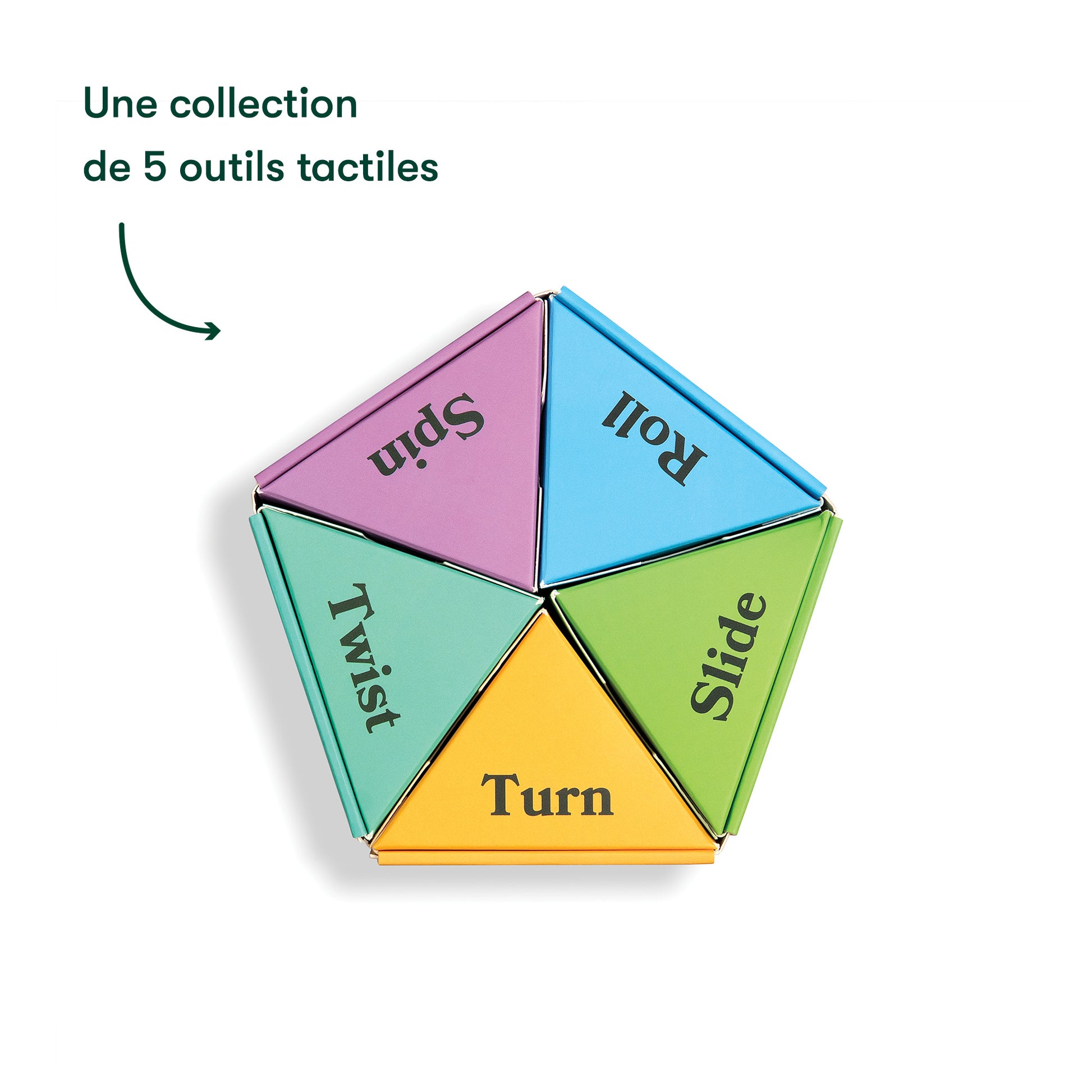 Kit complet de 5 jeux différence offrant chacun une expérience sensorielle distincte. Cette variété répond aux préférences individuelles et permet aux utilisateurs de découvrir les outils qui les apaisent et les stimulent le mieux.