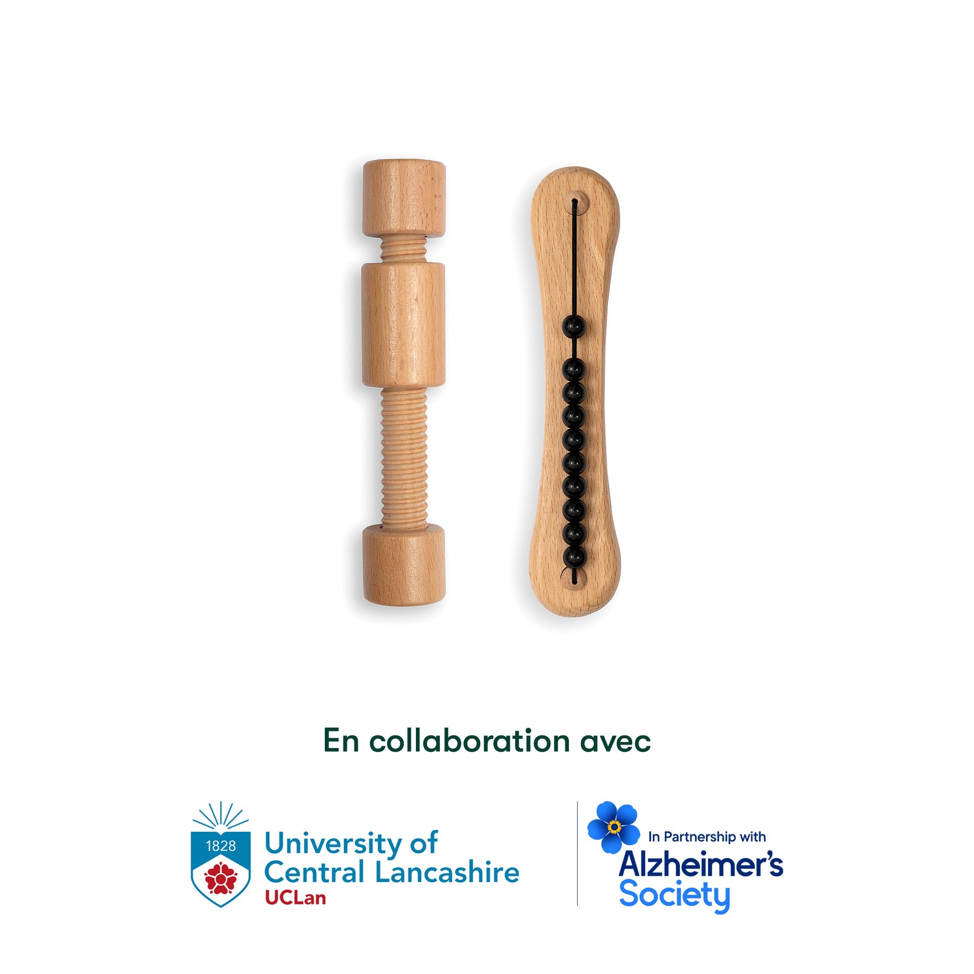 Le Fidget Widget a été conçu en collaboration avec la Société Alzheimer et l'Université de Central Lancashire, afin d'améliorer le bien-être des personnes aux derniers stades de la démence, en répondant à leurs besoins psychologiques de se sentir occupés, engagés et inclus dans une activité significative de leur choix.