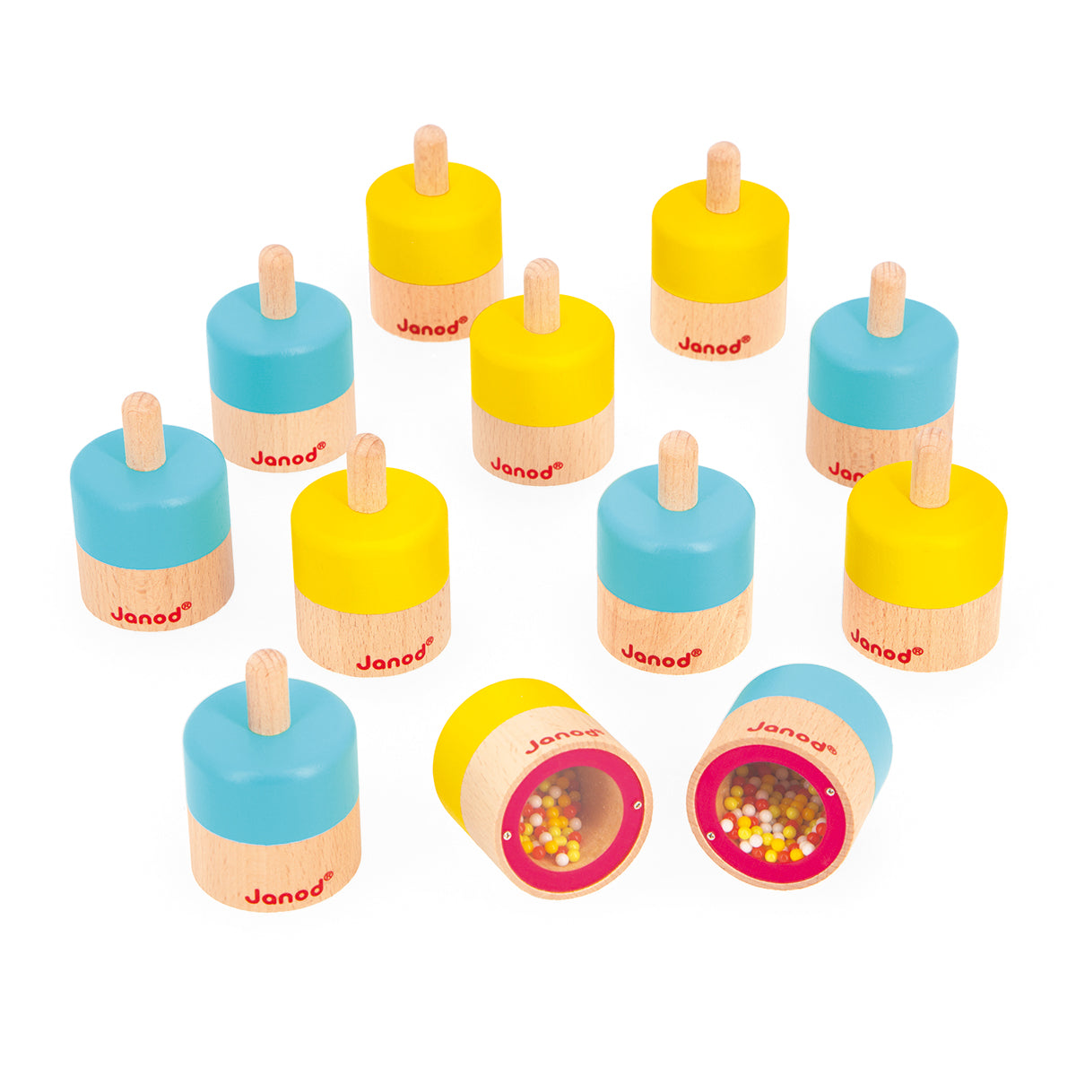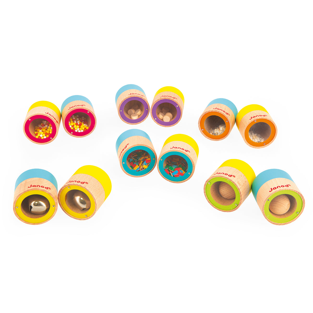 Sauras-tu reconnaitre 2 sons identiques ? C’est le moment d’essayer ! Jeu de mémoire auditif où il faut recomposer 6 paires reproduisant le même son : il y a donc 6 sons différents. Chaque paire est composée d’une pièce jaune et d’une pièce bleue avec un système d’auto-correction. On peut donc jouer seul ou à plusieurs comme un jeu de mémo standard (chaque joueur, à tour de rôle, écoute 1 pièce jaune et 1 pièce bleue jusqu’à recomposer toutes les paires). Ce jeu développe l’ouïe et la mémoire. Jeu d’éveil en bois FSCTM. Pour les enfants à partir de 3 ans.