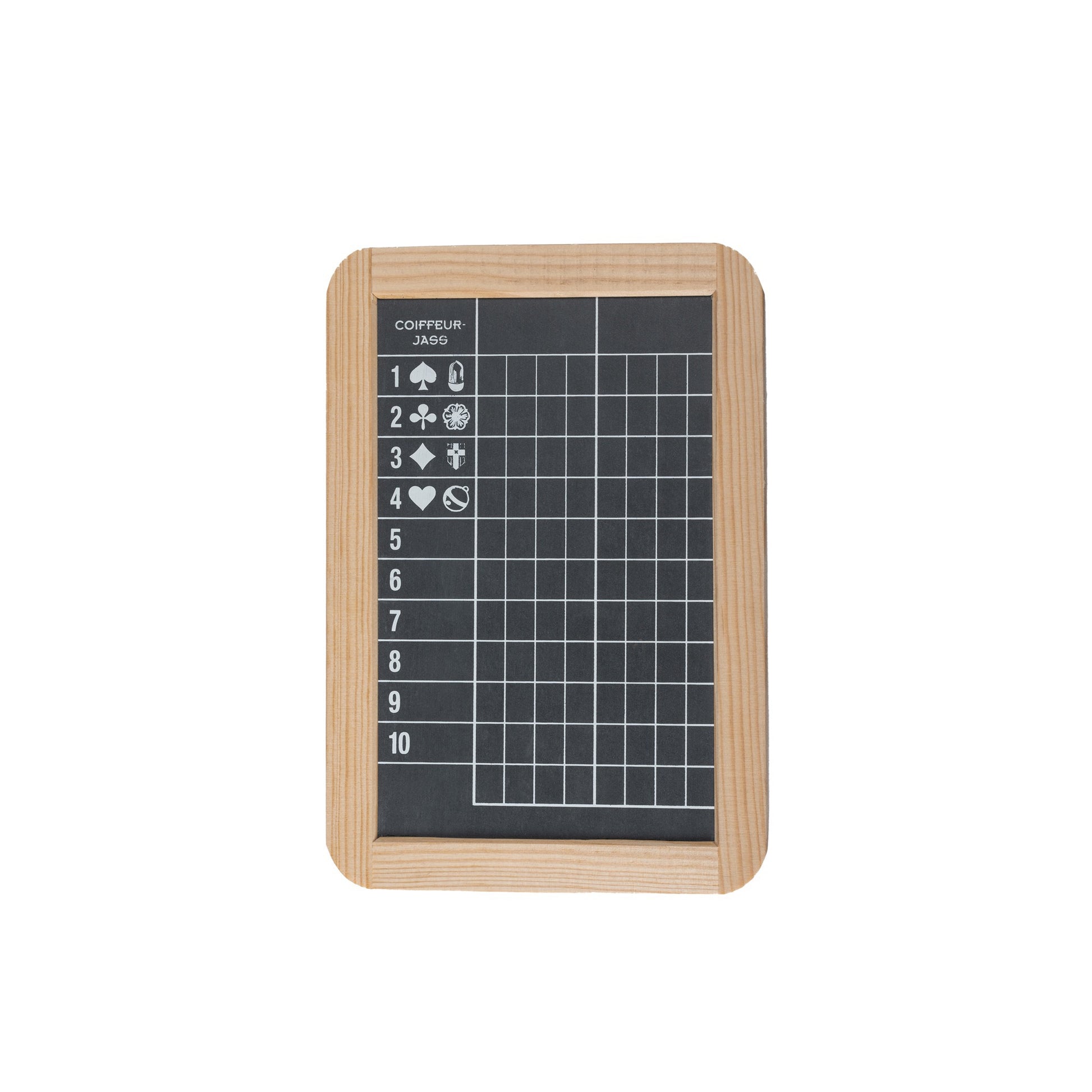 Magnifique ardoise coiffeur pour Jass afin d'y inscrire vos scores. N'hésitez pas à utiliser nos crayons pour ardoise.