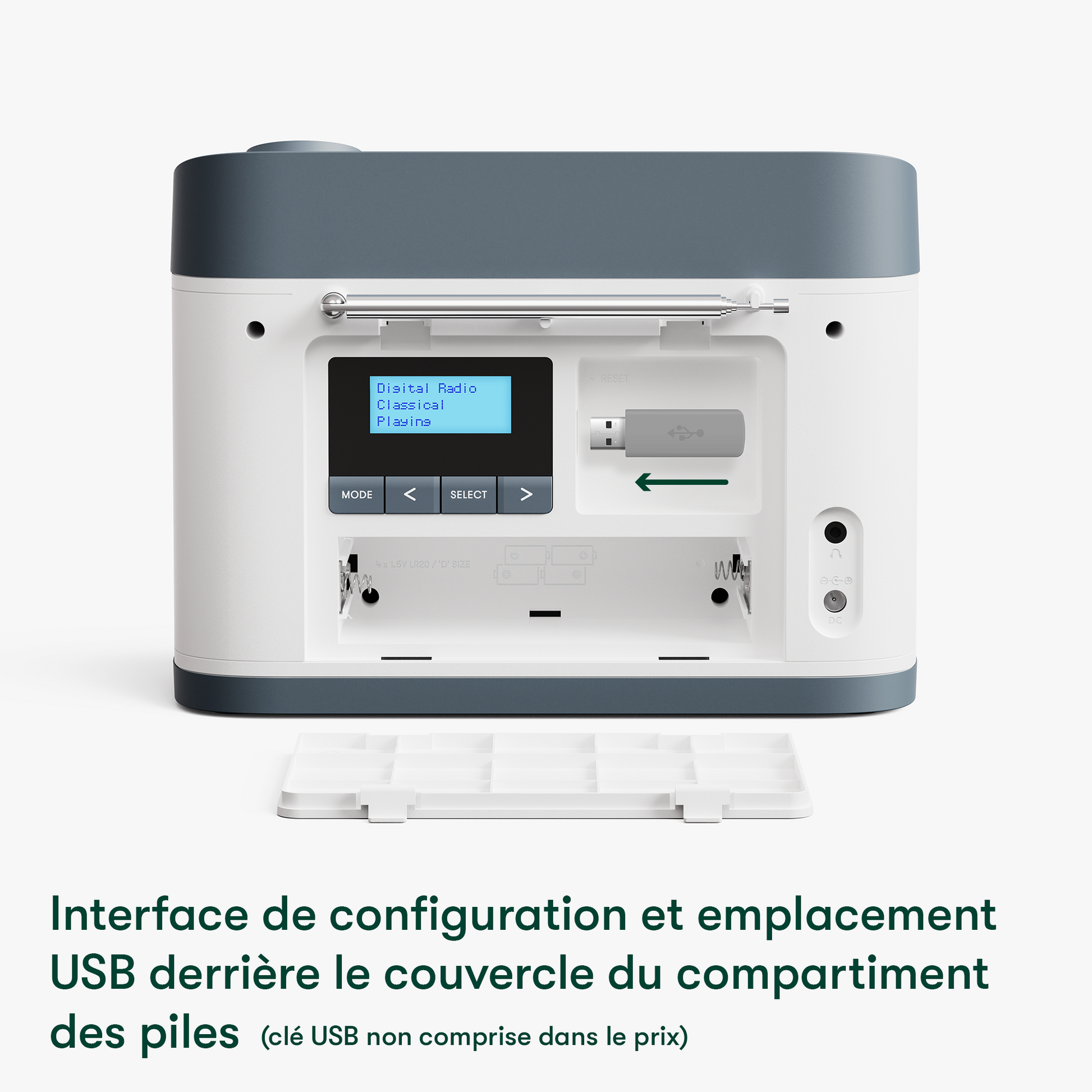 - Un quatrième bouton pour votre propre liste de lecture en insérant une clé USB à l'arrière.