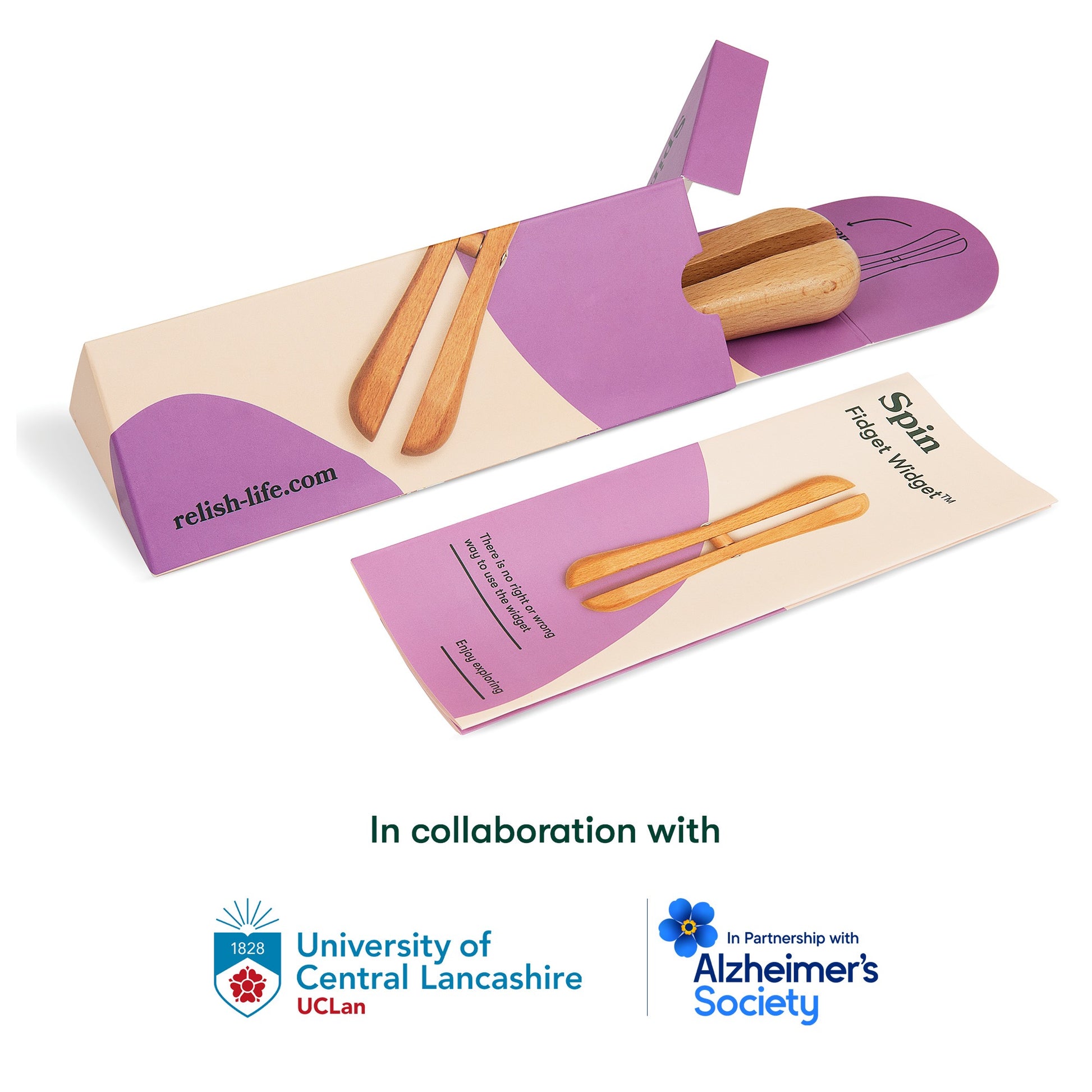 Le Fidget Widget a été conçu en collaboration avec l'Alzheimer's Society et l'University of Central Lancashire, afin d'améliorer le bien-être des personnes en phase avancée de démence, en répondant à leurs besoins psychologiques de se sentir occupées, engagées et incluses dans une activité significative de leur choix.